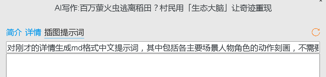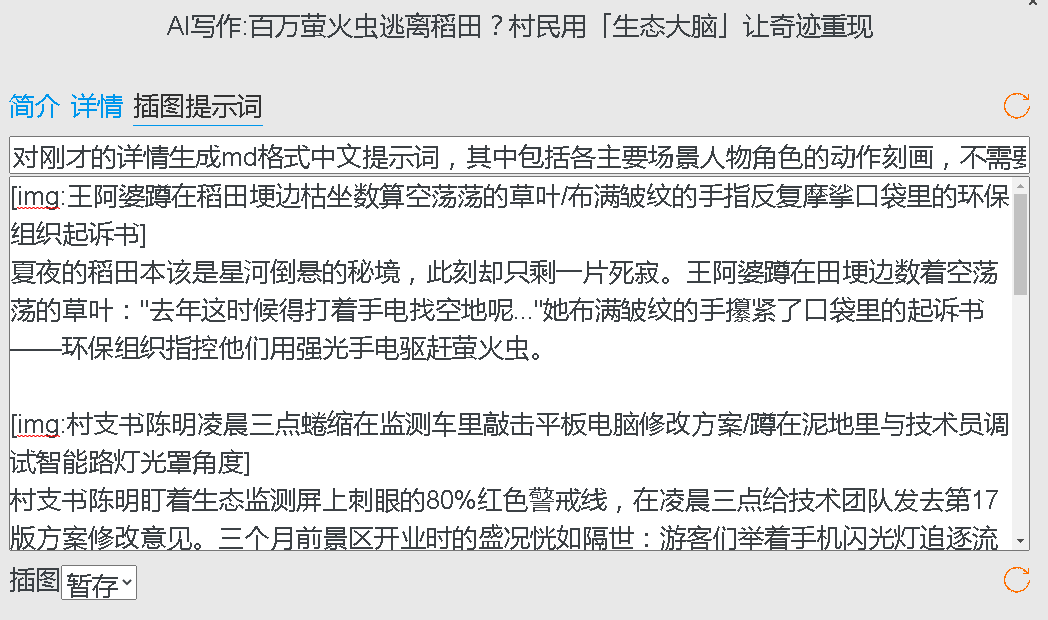 完成后点插图提示词、右侧刷新图标(ai根据段落含义独立性为详情配图),完成后会在文章内容下方列出各个典型场景的任务描写提示词(有时会重复一份,先删除)