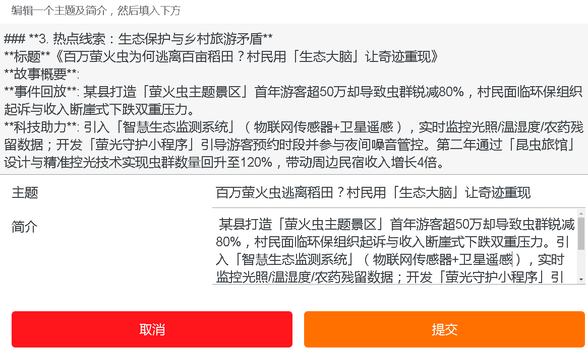 点击标题旁边向下箭头,列出缓冲的标题、简介,选一对,编辑后填入下方主题、简介,提交